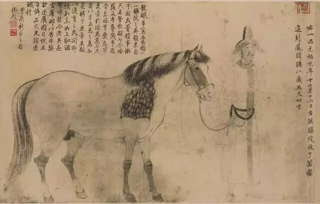 澄心堂紙不僅用于書法,也用于繪畫。據(jù)記載北宋畫家李公麟作畫不喜歡設色,多用白描,用的也是澄心堂紙。根據(jù)明代大收藏家項元汴考證,李公麟的傳世名作《五馬圖》用的就是澄心堂紙。